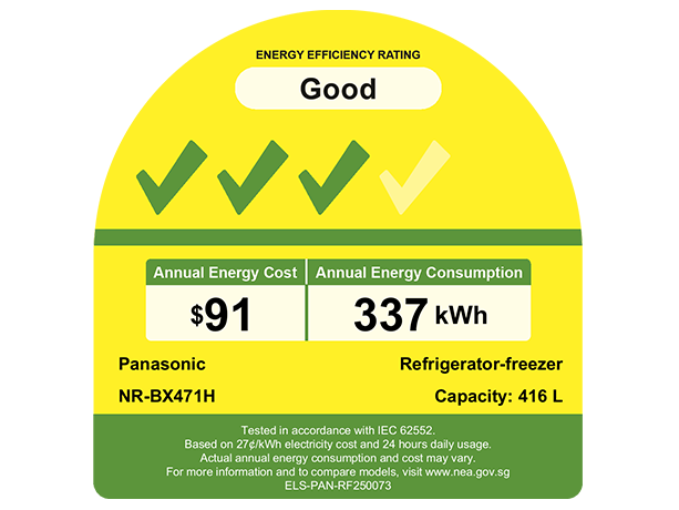 Capacity : Net 416L (IEC 62552:2015 + A1:2020)