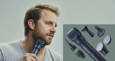 Začnite s modulárnym systémom osobnej starostlivosti MULTISHAPE – dostupným ako súprava obsahujúca hlavu zastrihávača brady/vlasov/ochlpenia na tele ER-CTW1, hlavnú jednotku s lítiovo-iónovou batériou ER-CBL1, ako aj úplne nové nadstavce ER-CDT1 a ER-CFB1 na precízne zastrihávanie a starostlivosť o tvár. Tento prispôsobený systém vyhovuje vášmu štýlu a požiadavkám na starostlivosť, ako sa vyvíjajú. Hlavná jednotka je napájaná lítiovo-iónovou batériou s dlhou výdržou a slúži ako základná jednotka pre všetky hlavy nadstavcov MULTISHAPE.