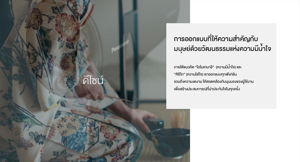 พานาโซนิค เราเชื่อว่าคุณภาพที่พิถีพิถันและนวัตกรรมที่ใส่ใจ คือหัวใจสำคัญในการยกระดับคุณภาพชีวิตประจำวันของทุกคน ตลอดระยะเวลากว่าหนึ่งศตวรรษ ความมุ่งมั่นสู่ความเป็นเลิศได้นำมาซึ่งความสะดวกสบายและความใส่ใจสู่ครัวเรือนทั่วโลก