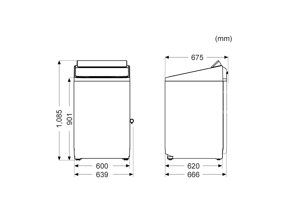 ความสูงด้านหน้าของตัวเครื่องลาดลง คุณจึงสามารถเอื้อมหยิบผ้าจากด้านล่างของถังซักได้อย่างง่าย