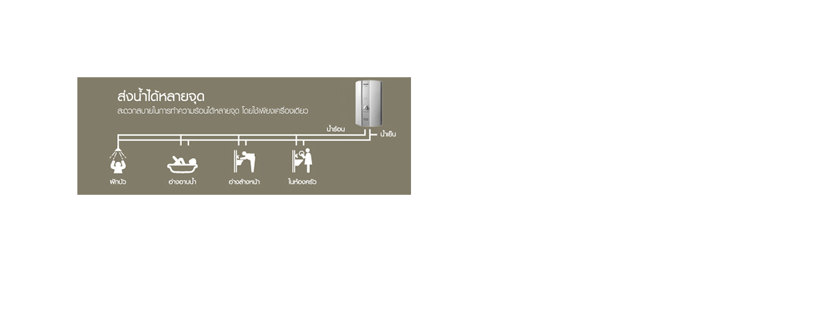 • เหมาะสำหรับใช้งานร่วมหลายจุด เช่น อ่างล้างหน้า อ่างอาบน้ำ ในครัว ฯลฯ
