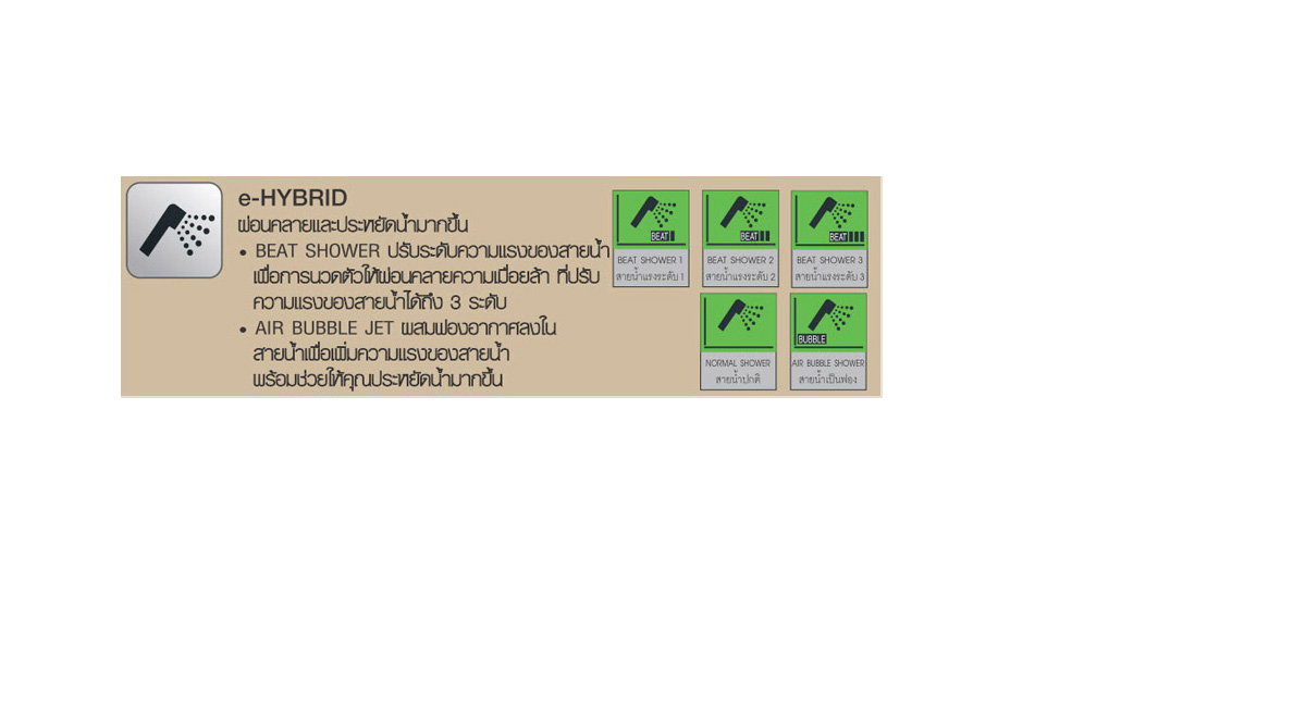 • E-Hybrid ปรับระดับแรงดันสายน้ำให้แรงขึ้น ผ่อนคลายและประหยัดน้ำมากขึ้น
