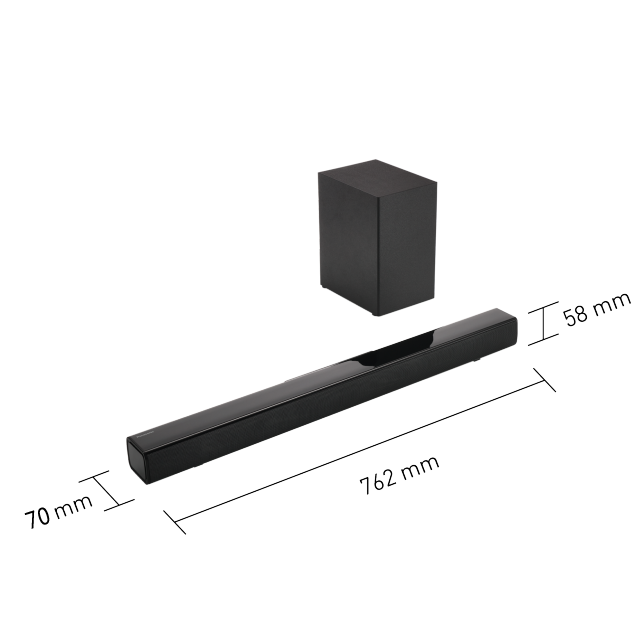 HTB150 時尚、纖薄的主機,搭配無線重低音箱,提供強勁的 100W 震撼音效。主機採用亮黑色機身和優雅的金屬揚聲器網罩,搭配不同的室內裝潢風格。此外,您也能夠用 HDMI 連接到您的電視或通過藍牙連接到您的手機。