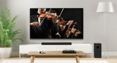HTB490 搭載強而有力的無線重低音揚聲器,可提供深沉且清晰的低音。纖薄平坦的機身設計,可俐落安置電視下方或是壁掛擺設,不僅與電視擺設融為一體,還可以充分提高您的觀賞體驗。