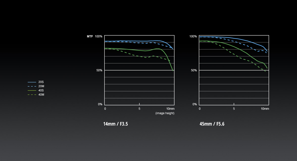 MTF Chart 對於可補償失真的鏡頭,MTF 的橫軸表示從校正影像中心到邊緣的距離。