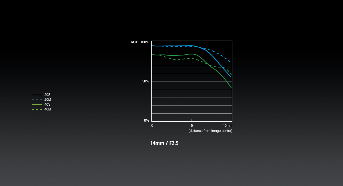 MTF Chart 對於可補償失真的鏡頭,MTF 的橫軸表示從校正影像中心到邊緣的距離。