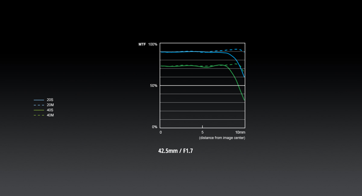 MTF Chart 對於可補償失真的鏡頭,MTF 的橫軸表示從校正影像中心到邊緣的距離。
