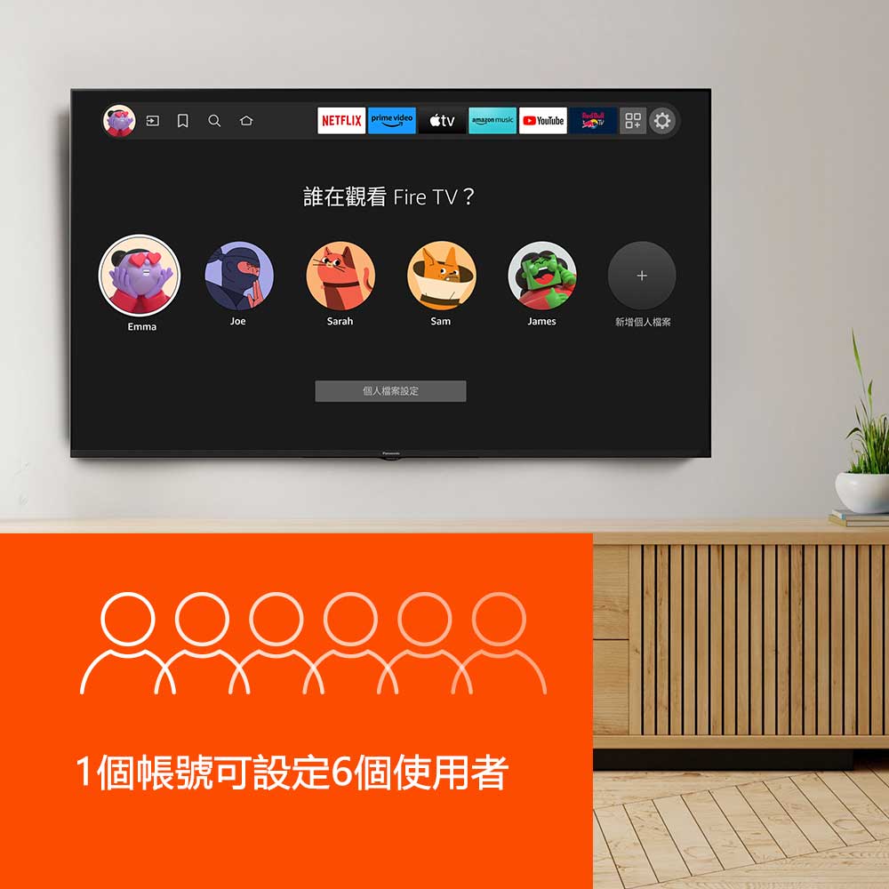 登錄1個Amazon帳號後可設定6個不同的使用者,Fire TV會依據不同使用者推送觀看清單和個人化內容,讓不同的使用者都能享受其專屬的推薦節目。