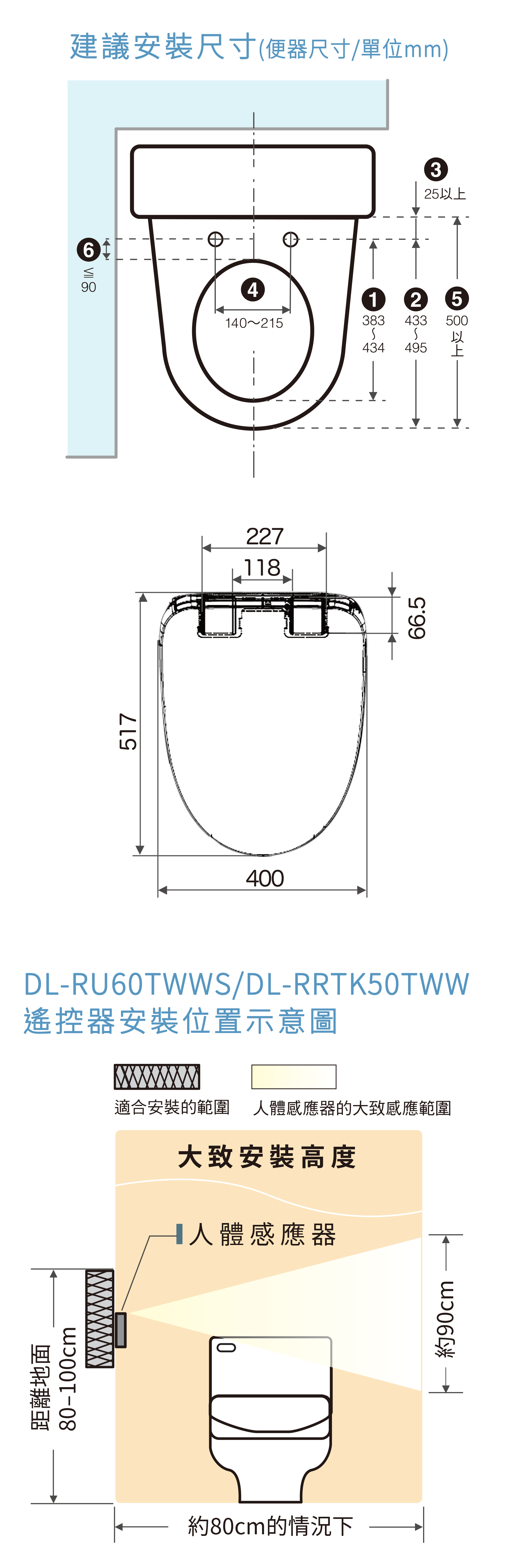 *¹⁸:方形或特殊規格之馬桶除外。安裝配件之尺寸以實際丈量為主。本產品安裝之螺絲適用於安裝孔深度≦3公分之馬桶。