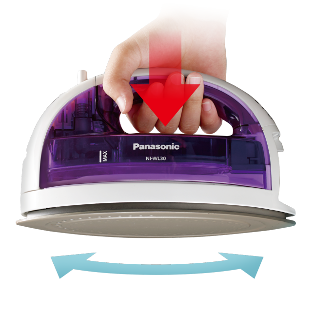 手握的位置與熨斗重心一致,能減輕肩膀和手腕的負擔,輕鬆不費力。