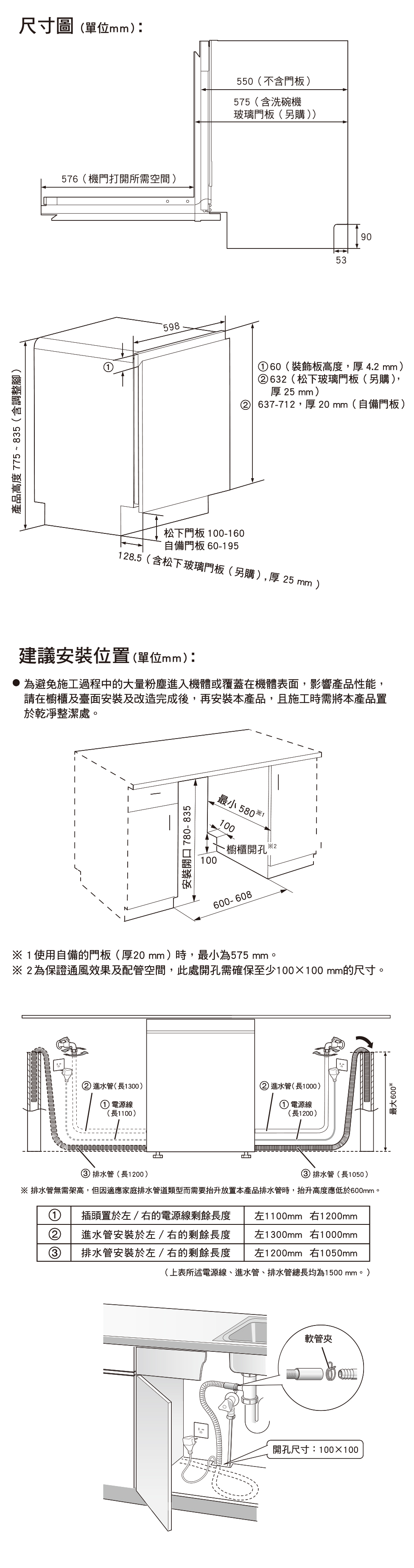 * 須自行客製板材,自備門板建議尺寸(mm):寬598 高637-712 厚20。
