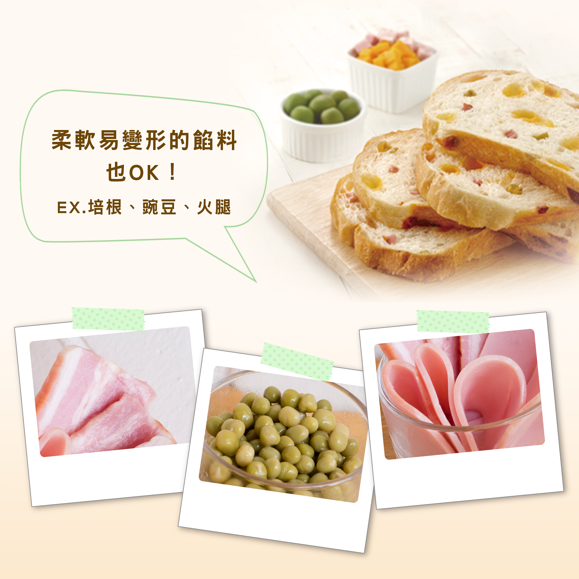 依喜好可做出做出3種不同口感的吐司麵包,吐司麵包玩出不同新花樣,就算時間有限也能從容做出美味的麵包。