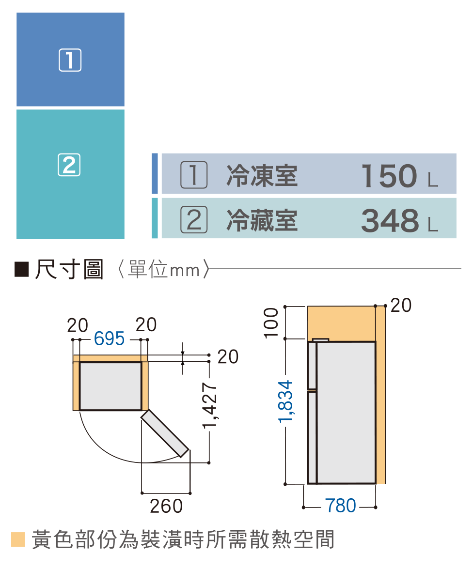 *4 外面氣溫30°C,無開關冰箱門的穩定溫度(本公司測定)。