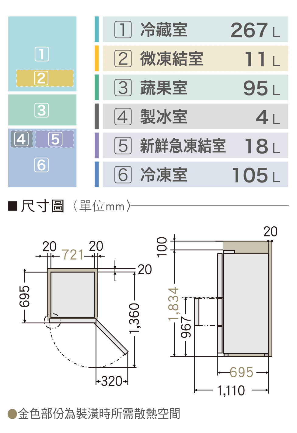 *2 ECONAVI會主動調整至最省運轉,但配合當天使用狀況(四周溫度、冰箱門開關次數與時間、食物收納狀態、收納位置、收納溫度),ECONAVI運轉可能切換至一般運轉。