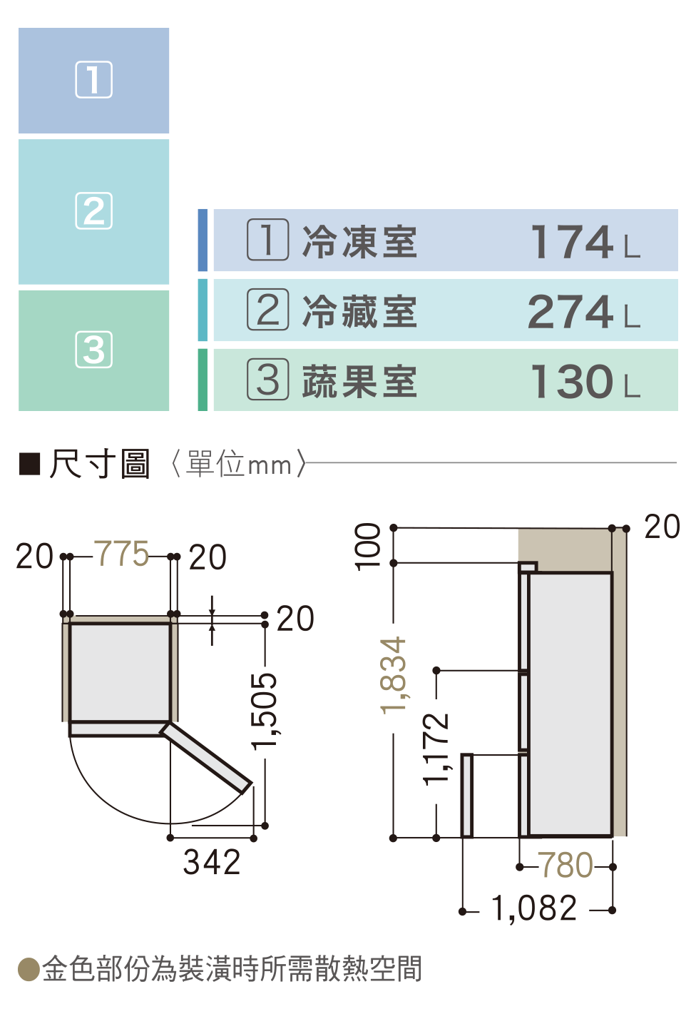 *3 ECONAVI會主動調整至最省運轉,但配合當天使用狀況(四周溫度、冰箱門開關次數與時間、食物收納狀態、收納位置、收納溫度),ECONAVI運轉可能切換至一般運轉。