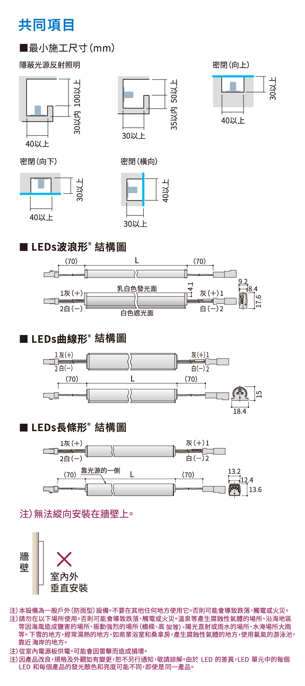 * 應用的空間有尺寸限制。