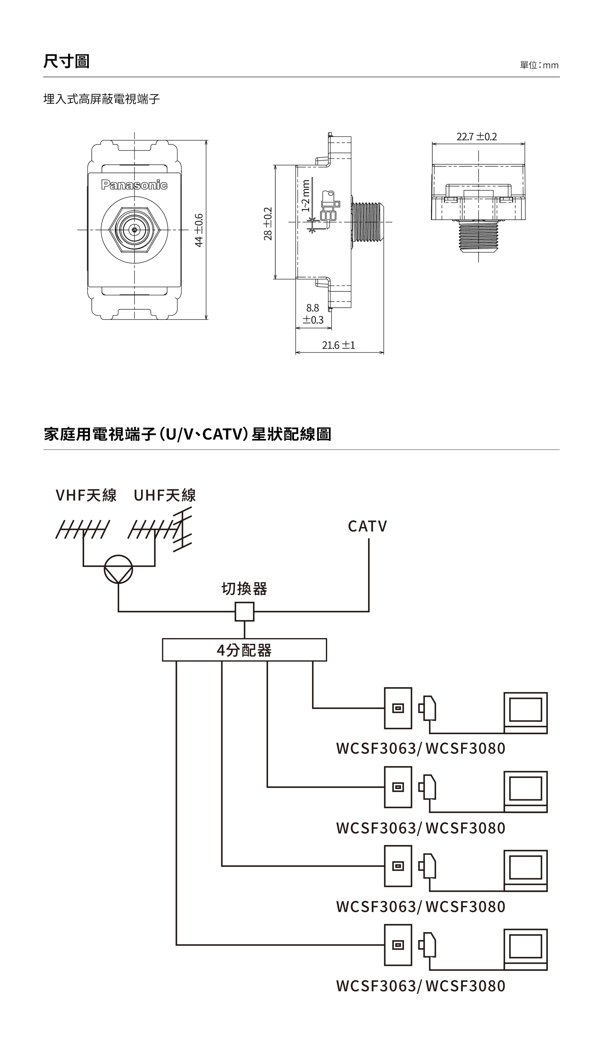 * 埋入式電視端子(電流通過型)標註型號於2023年12月31日停產。