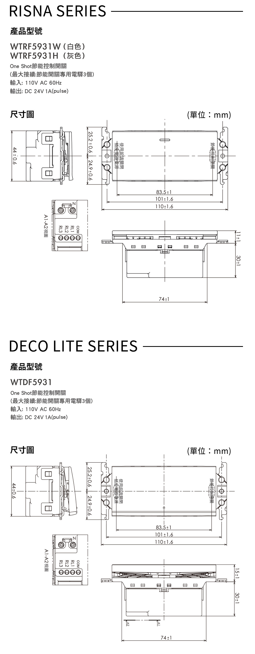 • 開關接續請使用Panasonic出產的節能開關專用電驛*。
