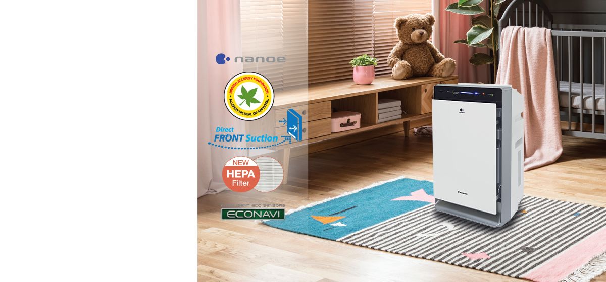 Насолоджуйтеся здоровим повітрям завдяки сучасним технологіям очищувачів повітря від Panasonic. До основних функцій належать очищення з технологією nanoe™, Econavi, Mega catcher, зволоження, 3D-циркуляція повітряного потоку на загальній площі роботи 52 м².
