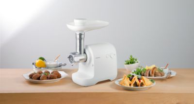 М’ясорубку оснащено потужним мотором на 1700 Вт і виготовленими в Японії ріжучим ножем, що дає змогу ефективно подрібнювати м’ясо.У комплекті насадки для приготування різноманітних страв.