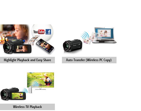 You can enjoy Highlight Playback with a smartphone or tablet right after shooting. Favorite scenes can be shared on SNS with simple drag and drop operation.