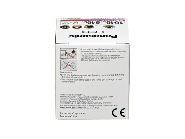 Ultra Long Life: Panasonic can achieve a lifetime of 25,000 hours which is approximately 25 years (at usage of 2.7 hours per day). Moreover Panasonic offers a 3 year warranty from date of purchase.