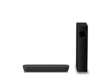 The HTB258 includes a wireless subwoofer can be installed vertically or horizontally, whichever fits the setup of your listening space. Either way, the additional 14 cm subwoofer adds further depth to the high-resolution sound. Bass Reflex reinforces the overall bass output and helps channel the sound and improve its quality.