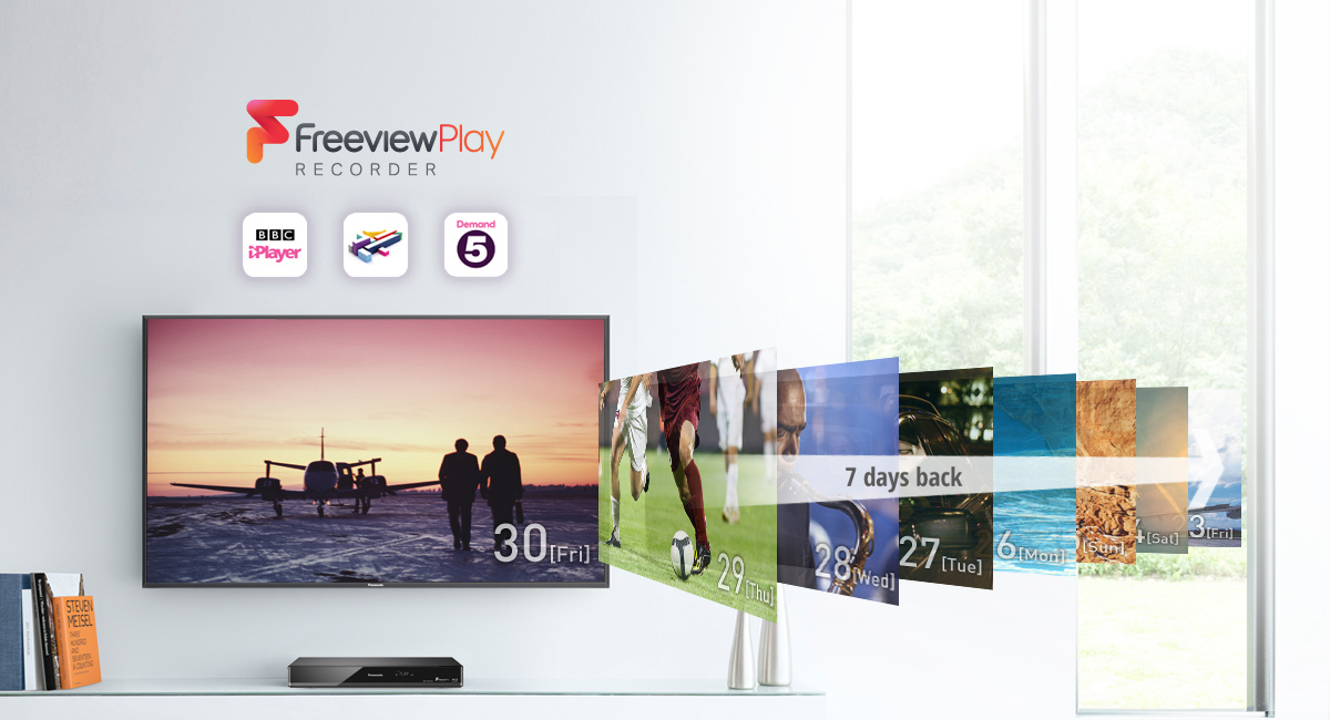 With the newly supported Freeview Play function you will be able to watch TV programmes from the last seven days. You can watch drama, news, sports and other programmes that you missed while you were away from home, without even having to record them. They're ready for you to watch when you're ready to watch.
