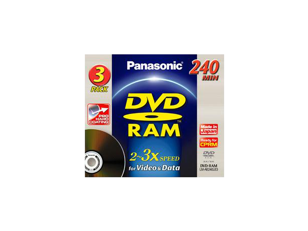12cm DVD-RAM Disc, 9.4GB, 240 Mins, Removable cartridge, 3 Pack
