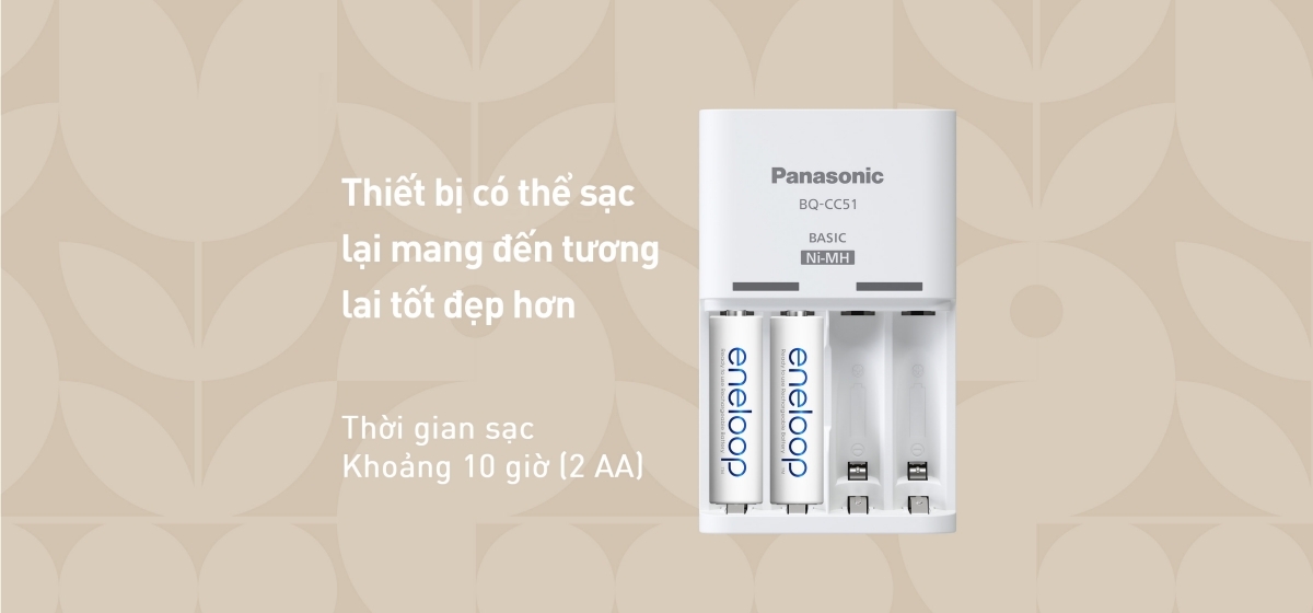 Bộ sạc eneloop CQ-CC51 tương thích với cả pin eneloop và pin eneloop pro, mang lại hiệu suất và chi phí tuyệt vời.