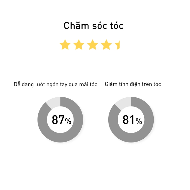 Hơn 80% người dùng phản hồi rằng tóc trở nên mềm mượt, bóng khỏe, giảm tĩnh điện rõ rệt và dễ dàng tạo kiểu hơn.